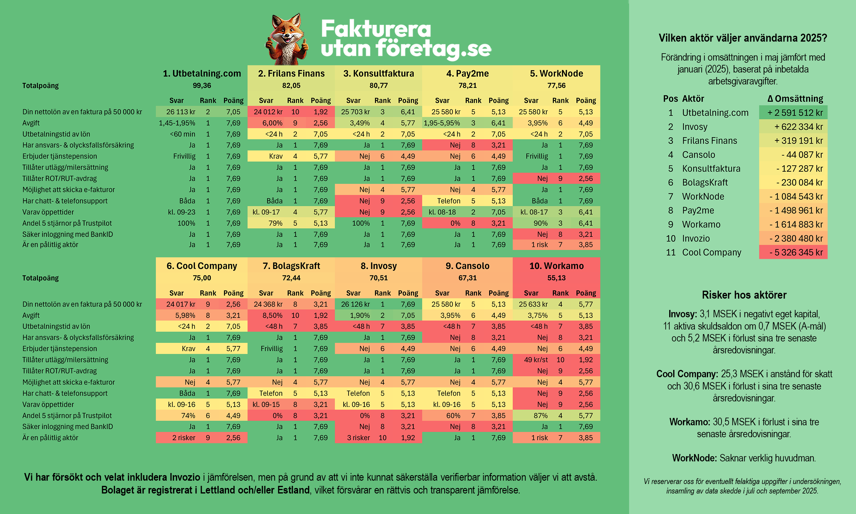 År 2025 utklassade Utbetalning.com samtliga konkurrenter och fick toppbetyg i 13 av 13 jämförelsekategorier enligt Fakturerautanföretag.se!